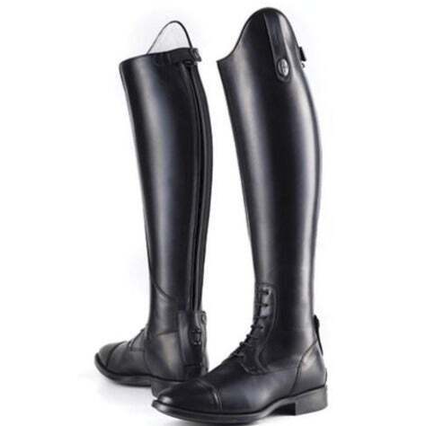 The Amabile boots wth laces, are fantastic value for money. Perfect for all manner of equestrian disciplines. Made from smooth calfskin leather, they feature an additional leather panel inside the leg for a better leather performance and two spur studs positioned on the bottom zip guard at two levels, as well as rubber lined non-slip soles and an elastic panel to fit a wider range of sizes. The elastic panel will stretch up to 1.5cm.