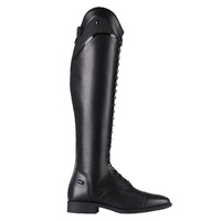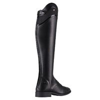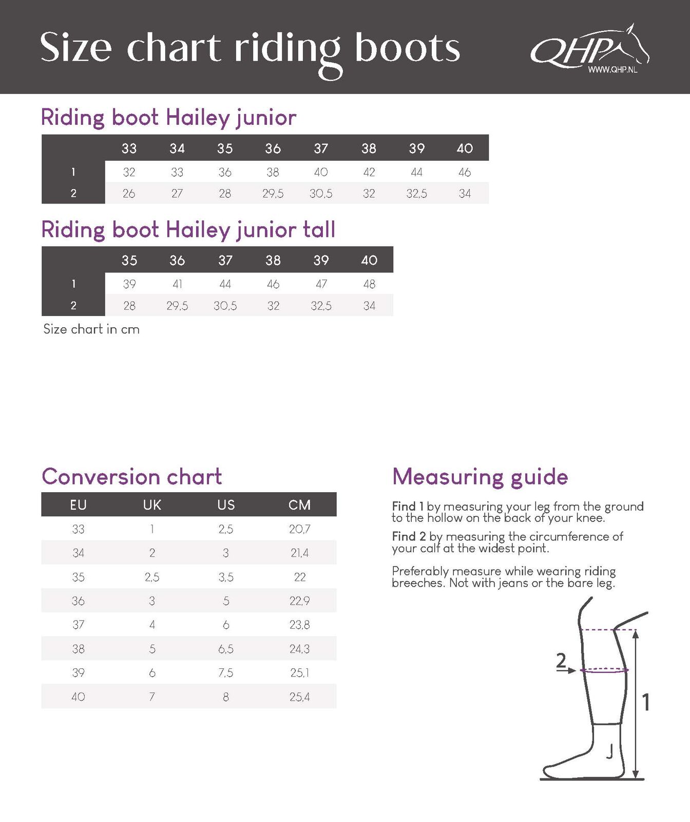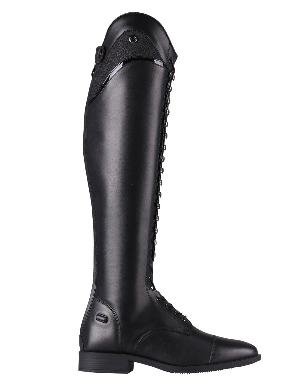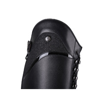 The Hailey junior riding boot is a standout choice for young equestrians who want both style and performance in the horse arena. Designed to turn heads, this long boot features a stunning patent leather top with glitter detailing and eye-catching decorative lacing. While the laces create a bold look, the side zip ensures the boots are quick and easy to put on. An elasticated lace panel, flexible elastic insert, and cushioned insole provide exceptional comfort - perfect for every young rider’s busy equestrian day.