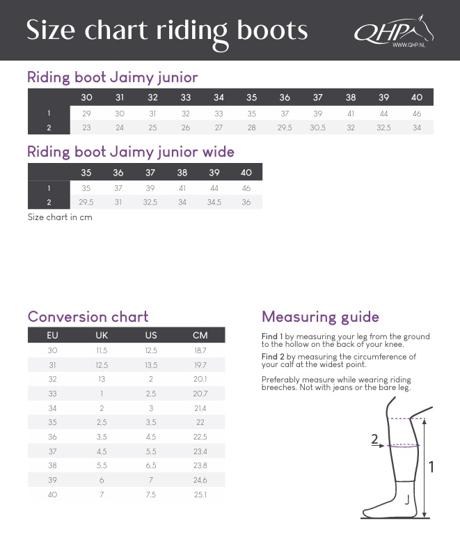 QHP Jaimy Junior Riding Boot is great for kids and growing legs! Featuring a zipper with elastic insert in the back and an elastic lace in the front.